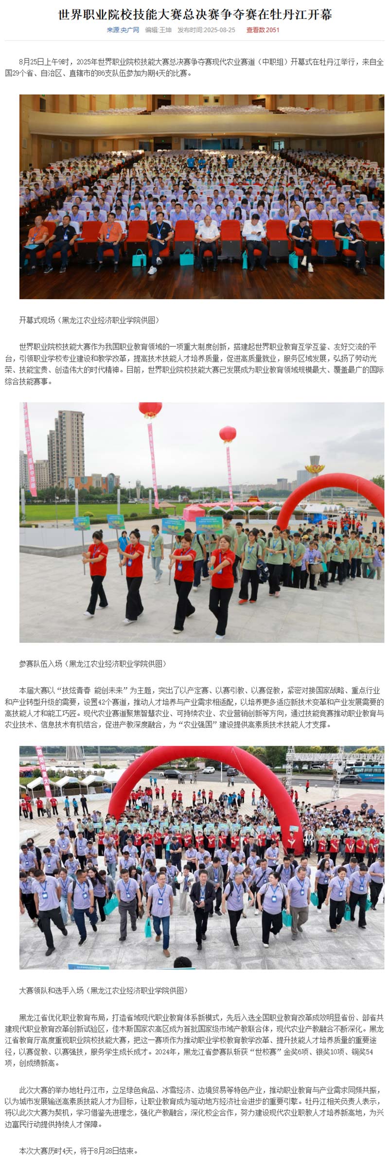 【哈尔滨广播电视台】世界职业院校技能大赛总决赛争夺赛在牡丹江开幕